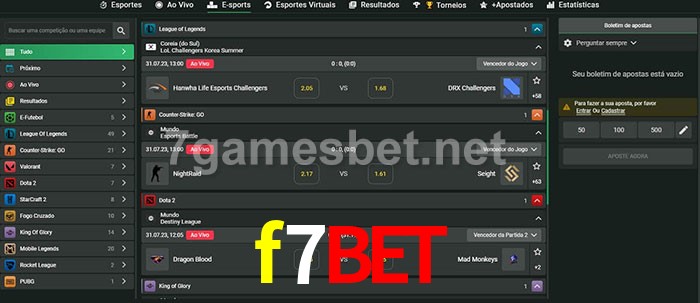 O f7bet oferece uma grande seleção de opções de apostas em e-sports com probabilidades competitivas